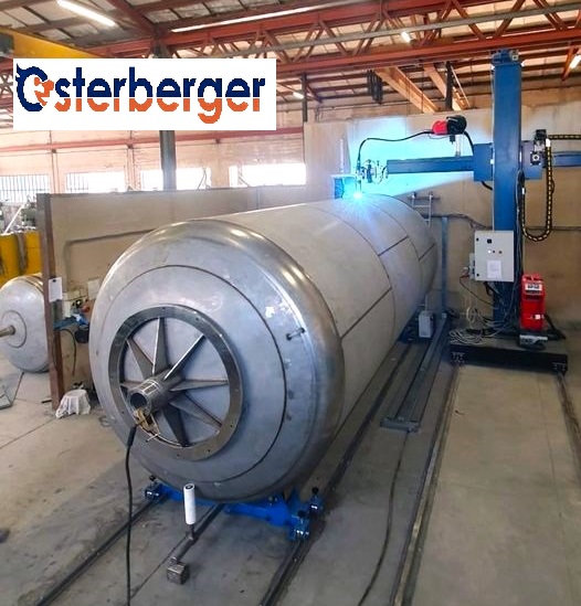 Darüber hinaus umfasst uns Lieferprogramm an schweißtechnischen Einrichtungen automatisierte Schweißanlagen für den Behälterbau, wie zum Beispiel kombinierte Rundnaht-, Längsnaht- Schweißsysteme für Behälter bis zu 2.000 kg Gewicht und einer Behälterlänge bis zu 3.000 mm.